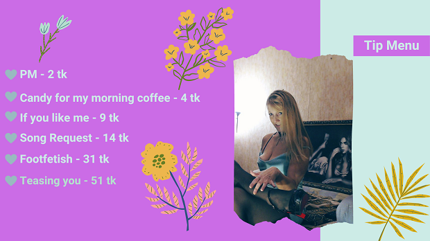 - striptease, roleplay, footfetish, dance, flirt